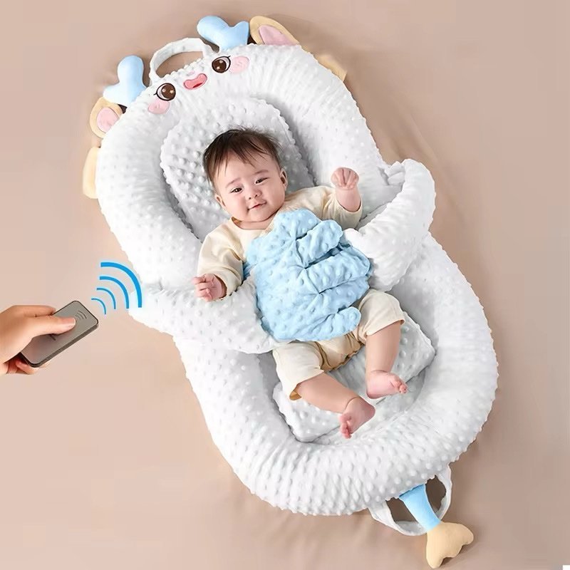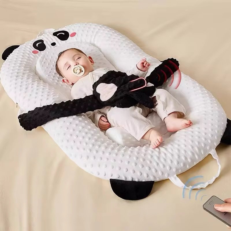 Les bras rembourrés sont ajustables et peuvent être manipulés à distance grâce à une télécommande intégrée (modèles spécifiques), permettant de bercer ou maintenir délicatement le bébé sans déranger son sommeil.
