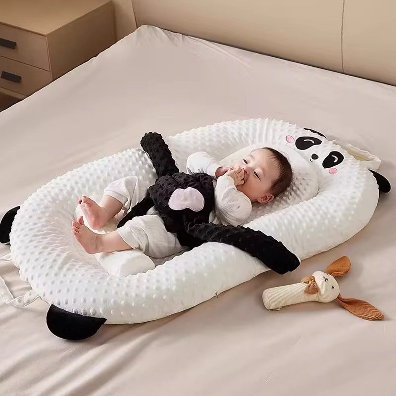 Facilement transportable et lavable, ce cocon est idéal pour la maison comme pour les déplacements. Disponible en plusieurs motifs adorables : panda, girafe, ourson, renne…