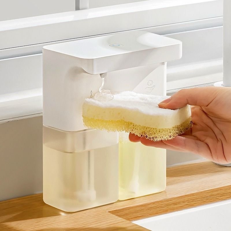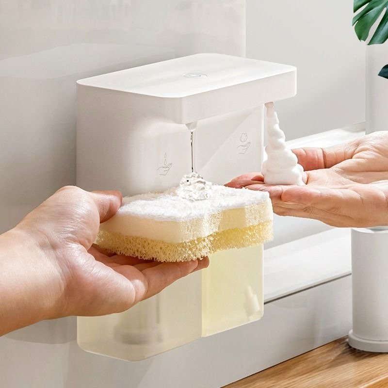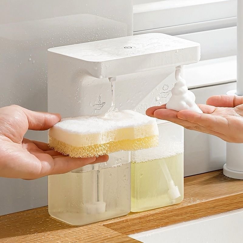 Un distributeur 2-en-1 sans contact pour savon et mousse, idéal pour salle de bain ou cuisine. Hygiénique, pratique et moderne !
