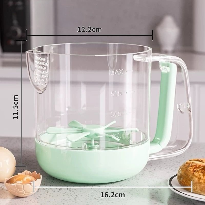 Ce pichet mélangeur manuel est l’outil parfait pour toutes vos préparations culinaires. Grâce à son mécanisme rotatif intégré au fond, il suffit d’un mouvement du poignet pour mélanger œufs, pâte à crêpes, sauces, ou même boissons protéinées.
