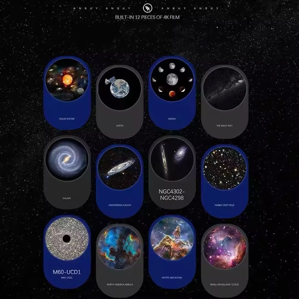 8A353ECE-C149-43AC-84C7-3E5CDC109DF2Transformez votre chambre en véritable planétarium avec ce projecteur LED de ciel étoilé haute définition. Doté de 12 disques interchangeables en résolution 4K, il vous offre des projections fascinantes du système solaire, de la voie lactée, de nébuleuses colorées, de planètes ou encore de constellations.