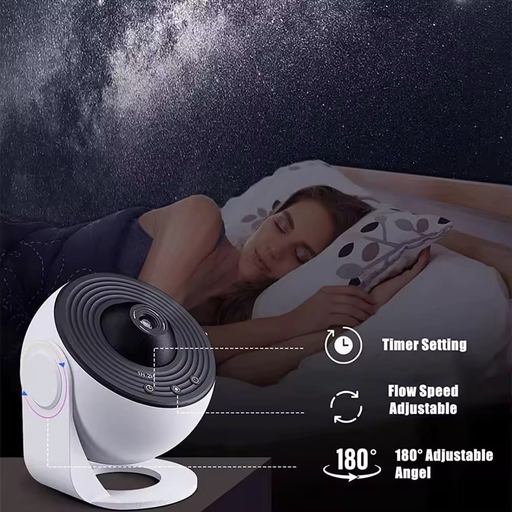 Grâce à son angle de projection ajustable à 360°, vous pouvez l’orienter vers le mur ou le plafond pour une immersion totale. Il est idéal pour la relaxation, les enfants, les soirées romantiques ou tout simplement pour décorer votre espace de manière originale.